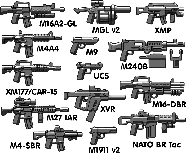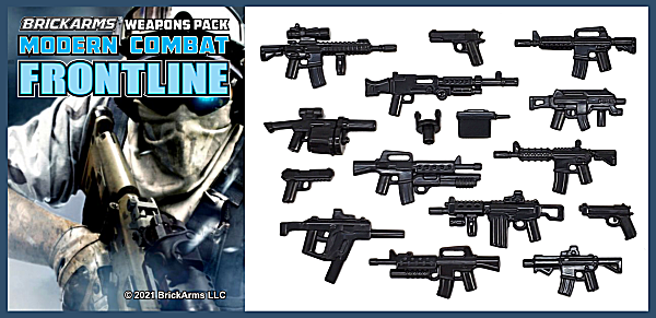Equip your troops for the bleeding-edge of minifigure battle with the BrickArms Modern Combat Frontline Pack! From machine guns to pistols to compact tactical carbines, the Frontline Pack includes enough classic and brand new BrickArms firepower to ensure victory! This pack includes: