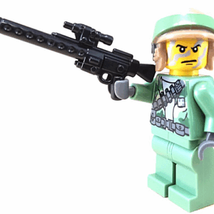 All BrickArms tiny toy weapons are made of solid ABS plastic, designed to be used with LEGO® toys. They cannot shoot bullets and cannot be made to fire bullets in any way.