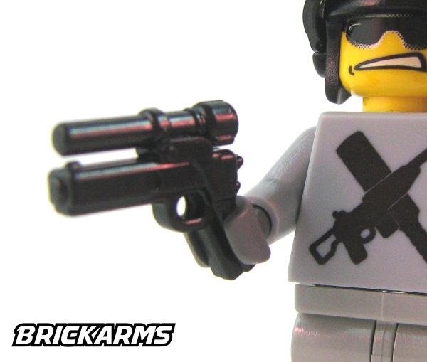 All BrickArms tiny toy weapons are made of solid ABS plastic, designed to be used with LEGO® toys. They cannot shoot bullets and cannot be made to fire bullets in any way.