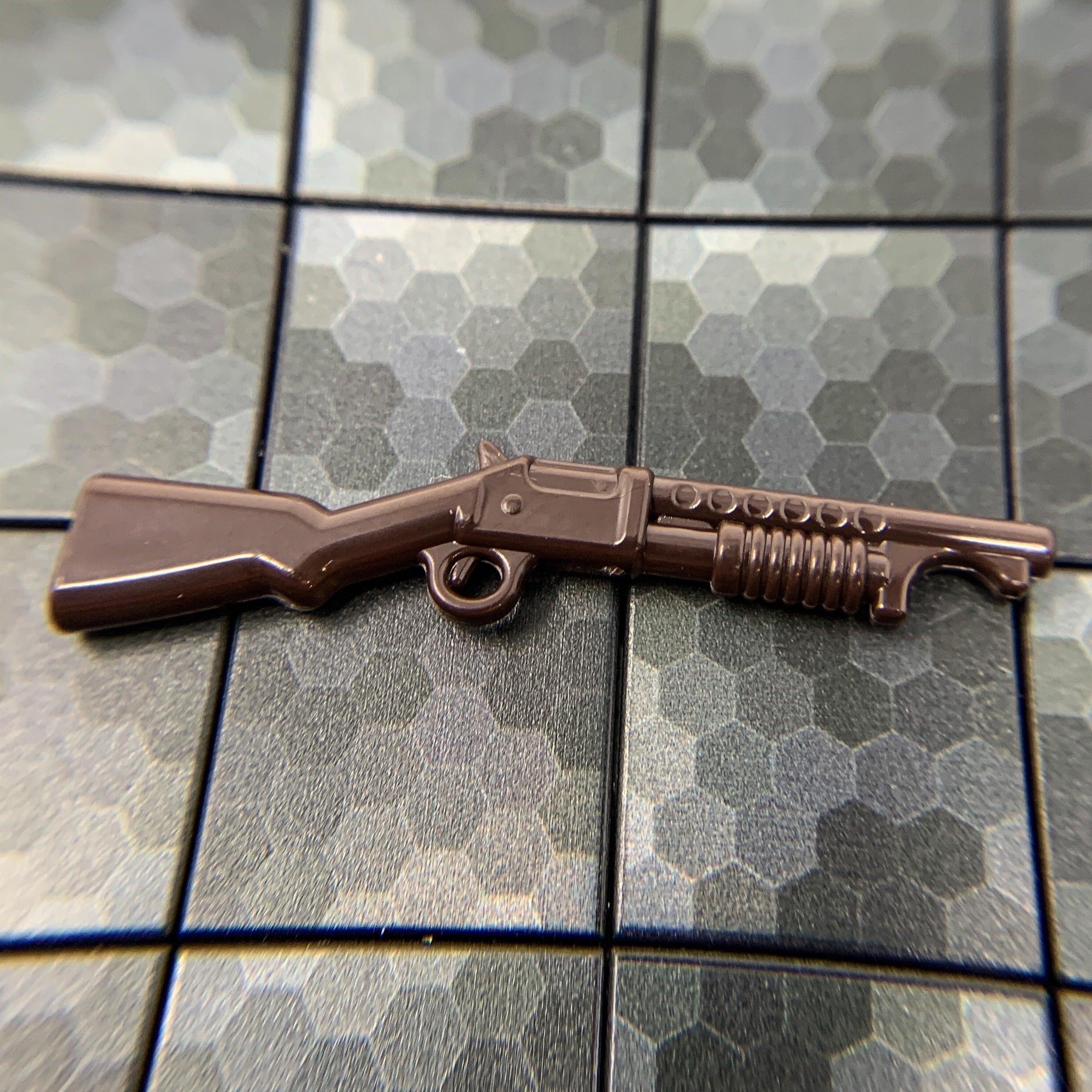 The shotgun of choice for any fig on the front lines, the BrickArms M97 Trench Gun features the distinctive bayonet lug and barrel venting that separate it from the civilian shotgun designs.